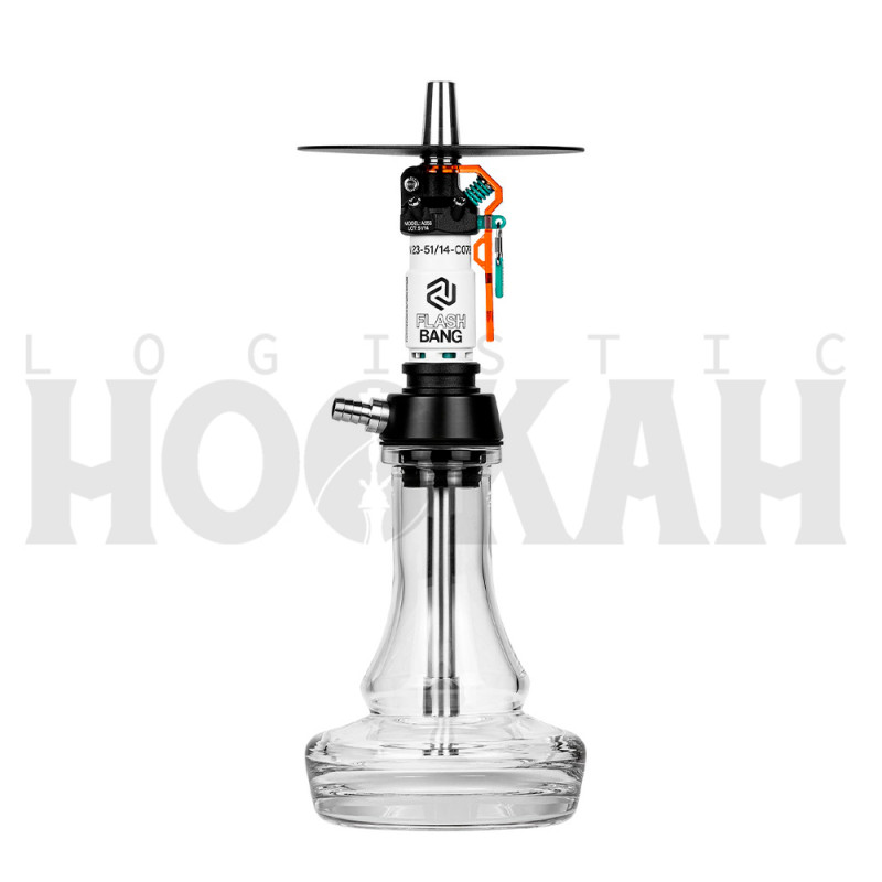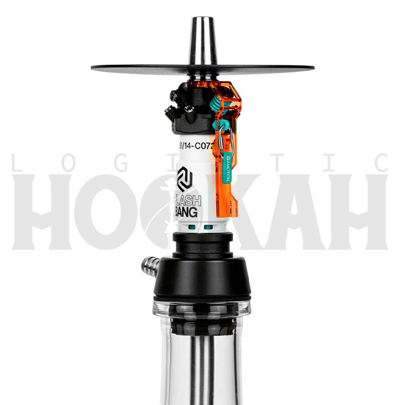 La cachimba Amotion Flash Bang está fabricada en acero inoxidable, policarbonato, aluminio, vidrio y ABS. Esta shisha destaca, principalmente, por su diseño único, exclusivo e impresionante, cuyo mástil simula la forma de una granada aturdidora o cegadora (de ahí su nombre Flash Bang).