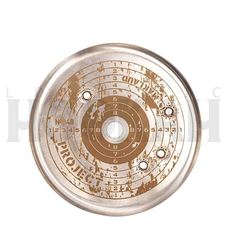El plato de la cachimba destaca por tener unos grabados exclusivos, que hacen referencia a una diana con varias balas y tiene una altura de 63 centímetros, aproximadamente. Su sistema de conexión es por junta de goma, por lo que puede utilizarse con cualquier base rusa grande.