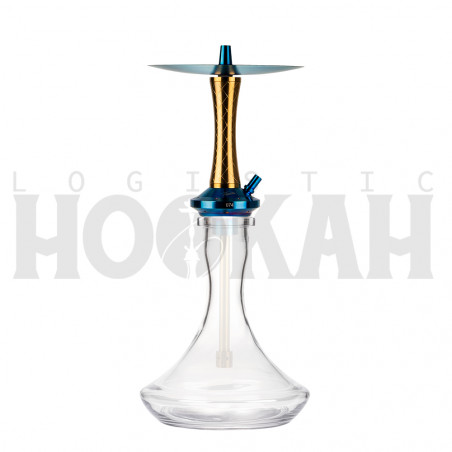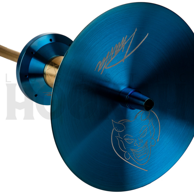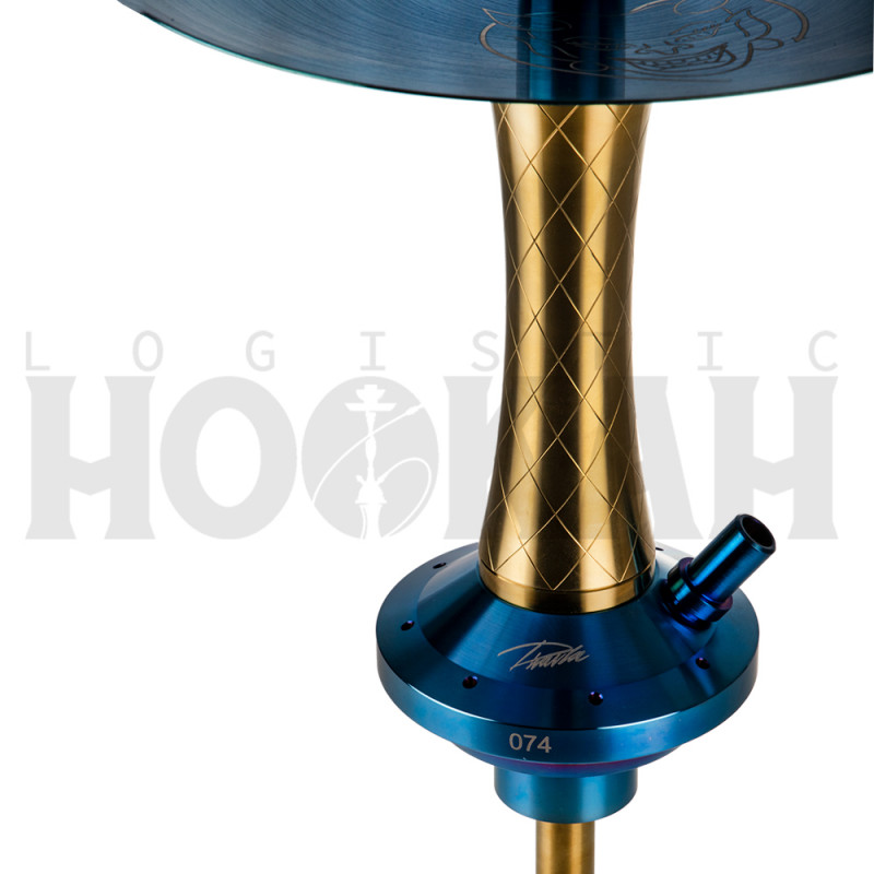 Con una altura de 47 centímetros, esta cachimba tiene una cámara de poliacetal, un cierre tradicional y un sistema de purga vertical que se divide en 16 salidas, ocho de ellas en la parte superior de la cámara y las otras ocho en la parte inferior. De esta forma, al purgar, el humo sale tanto en dirección al plato como a la base, lo que crea un efecto visual muy llamativo.