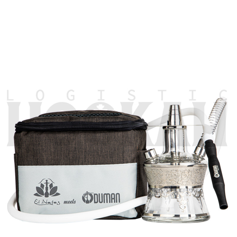 Cachimba Oduman N2 Travel Platinum By El Nefes, ¡incluye mochila, boquillas y manguera! Con detalles en color plata.