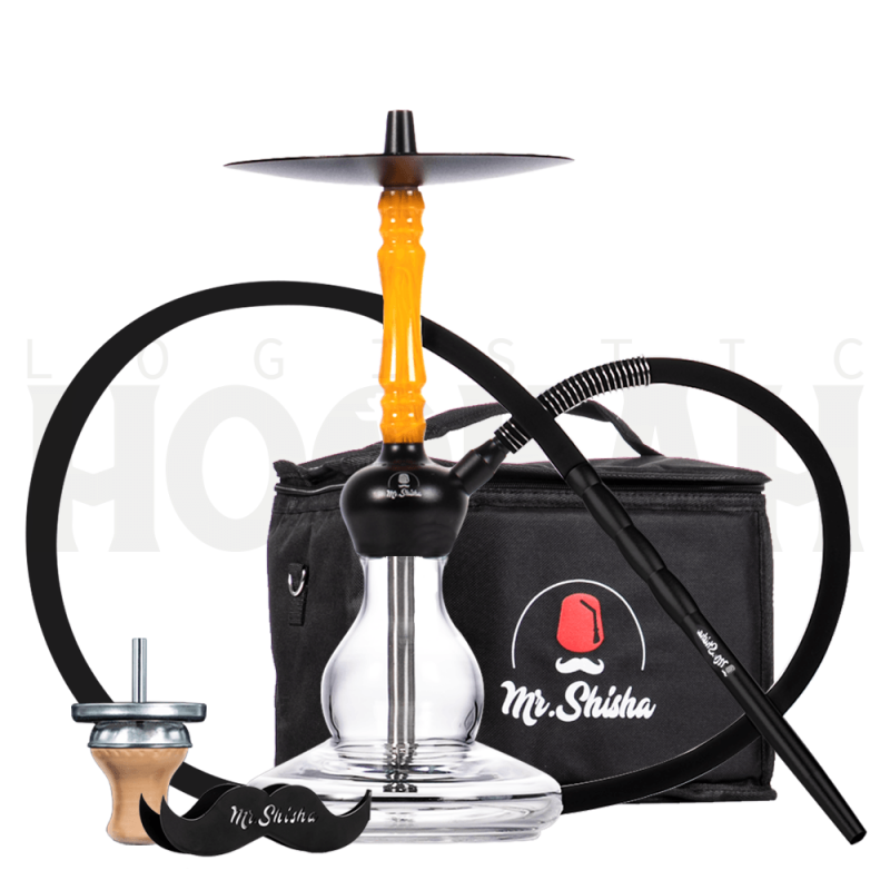 Esta shisha tiene una altura aproximada de 41 centímetros con una base muy estable. Su mástil esta hecho de materiales de efecto resina, aluminio y cuenta con un tubo de inmersión de acero inoxidable y un difusor incluido. La compra de la cachimba Mr. Shisha Rocket 2.0 incluye: