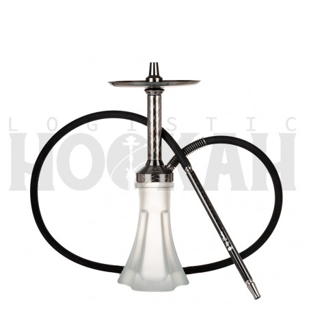 Esta cachimba tiene un cuerpo único y unas purgas totalmente innovadoras, que son intercambiables hasta en 3 posiciones. Tiene un tamaño pequeño, con tan solo 36 centímetros de altura con la base de cristal, está fabricada en acero inoxidable V2A y cuenta con un cierre a presión con junta de goma.