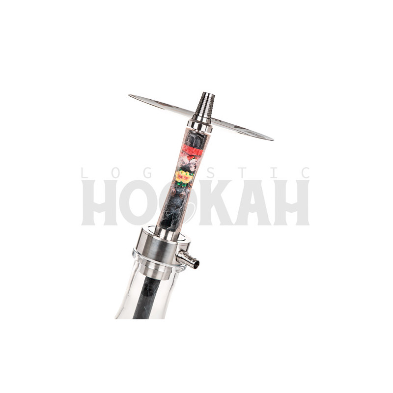 Esta shisha tiene una cámara tradicional y una purga con salida de humo en horizontal, creando un efecto visual muy llamativo al envolver el humo toda su cámara. Entre sus principales características, también destaca que tiene un sistema de cierre tipo clic y difusor de acero regulables en tres alturas y desmontables.
