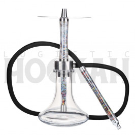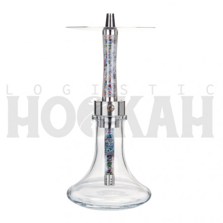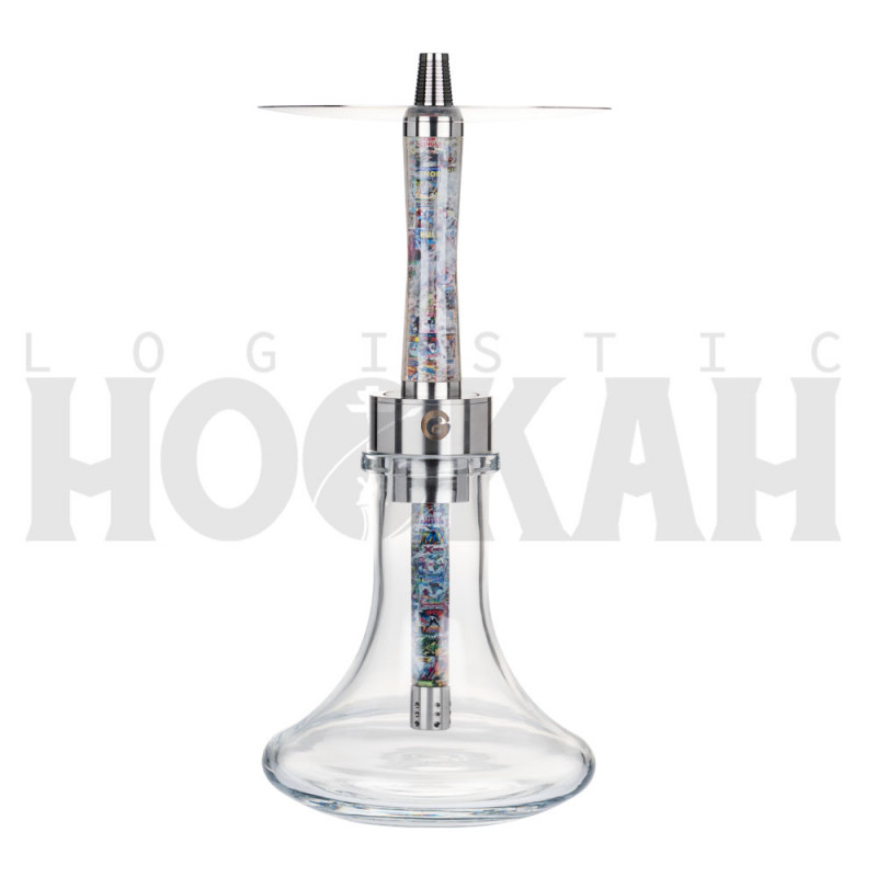 Esta shisha tiene una cámara tradicional y una purga con salida de humo en horizontal, creando un efecto visual muy llamativo al envolver el humo toda su cámara. Entre sus principales características, también destaca que tiene un sistema de cierre tipo clic y difusor de acero regulables en tres alturas y desmontables.