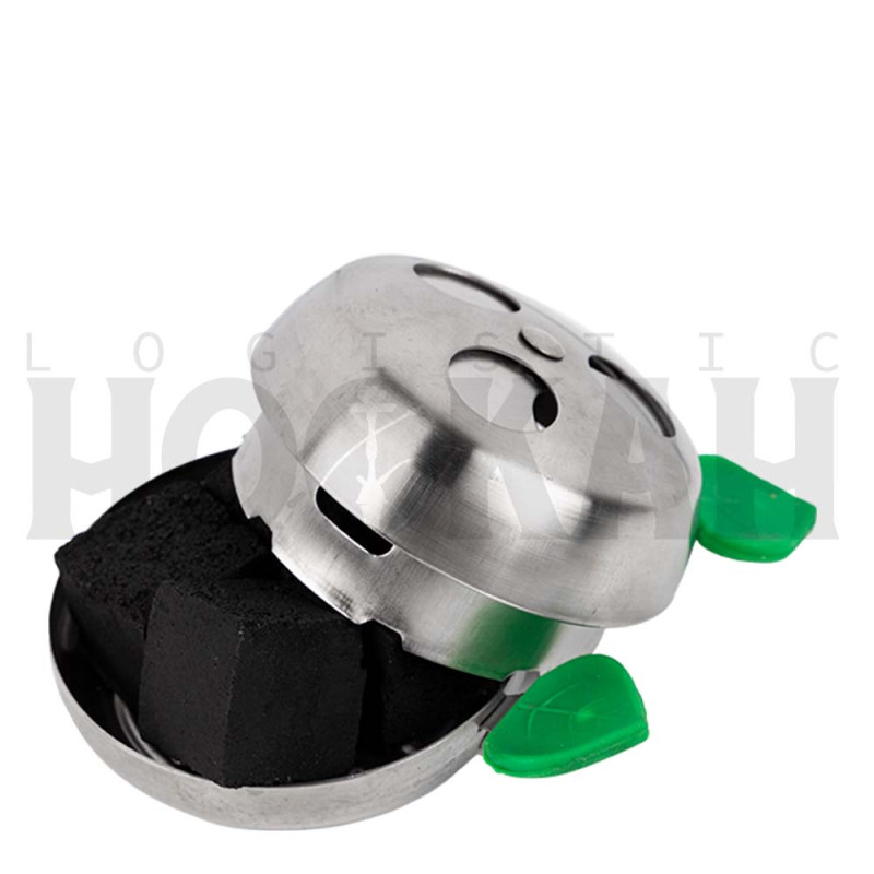 Gestor de calor Reprost fabricado en acero inoxidable, con una bandeja de carbón y una tapa protectora contra el viento. Gracias a esa bandeja para el carbón, podrás evitar que entre cualquier mínimo de ceniza en la cazoleta, ofreciendo la máxima calidad de sabor a un alto rendimiento.
