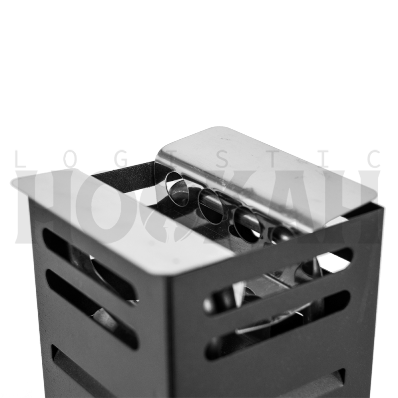 Además, su diseño y estructura hace que se pueda calentar el carbón por las cuatro caras a la vez, ya que los carbones se introducen como si fuese una tostadora. Funciona con corriente eléctrica. Cuenta con un asa para poder sujetarlo con seguridad.