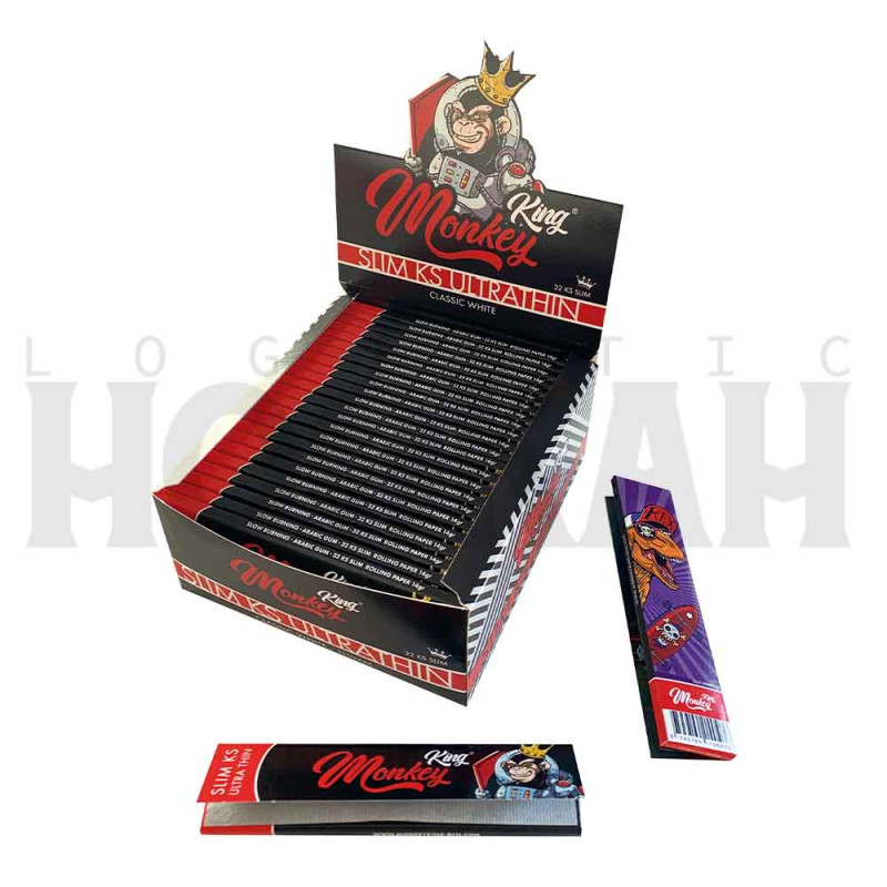 Papel de fumar Slim KS de la marca Monkey King. ¡Varios modelos disponibles! Cada expositor contiene 50 librillos y, cada librillo, 32 papeles.